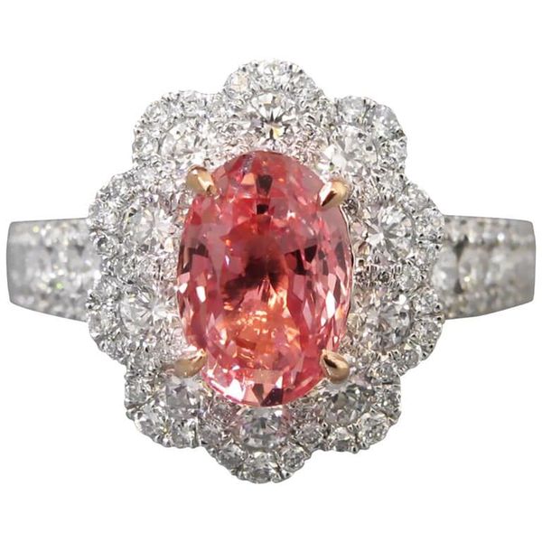 El color para el zafiro padparadscha puede variar desde un color salmón con un tono rosado hasta un tono naranja. También tienden a no tener un color uniforme, pueden tener zonas de color con toques rosas y amarillos alrededor de su color salmón.